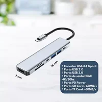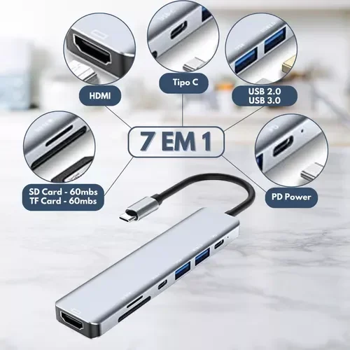 - Modelo: Adaptador Hub 7em1 para Mac Macbook HDMI Tipo C Usb 2.0 3.0 PD Power SD Card TF Card