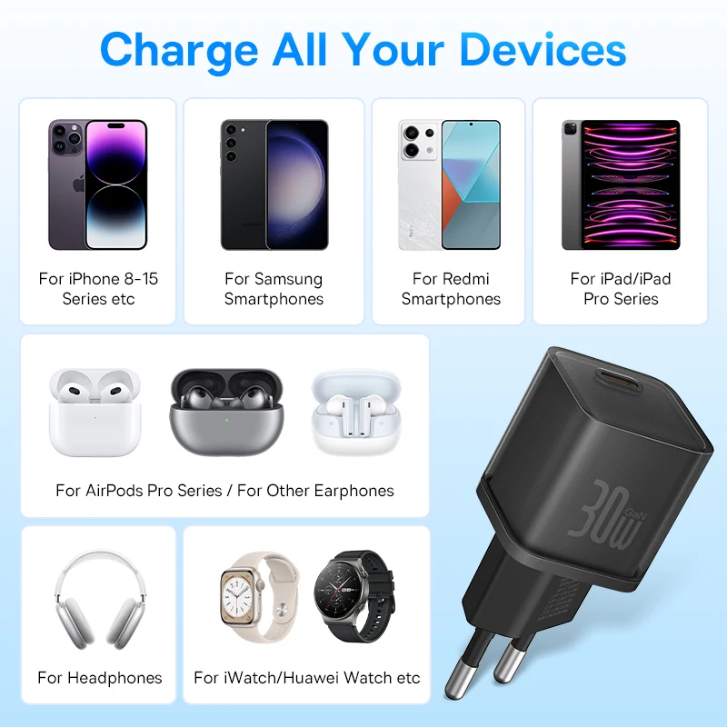 Compatibilidade de carregamento incomparável com laptops, tablets