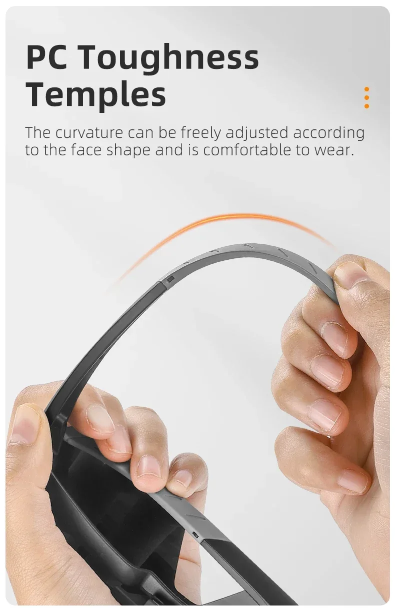 Não só tem a função de virar, mas também tem um ajuste sobre o design, adequado para lentes de prescrição e sem receita médica. A largura interna do quadro foi alargada, tornando-o adequado para a maioria dos óculos graduados.