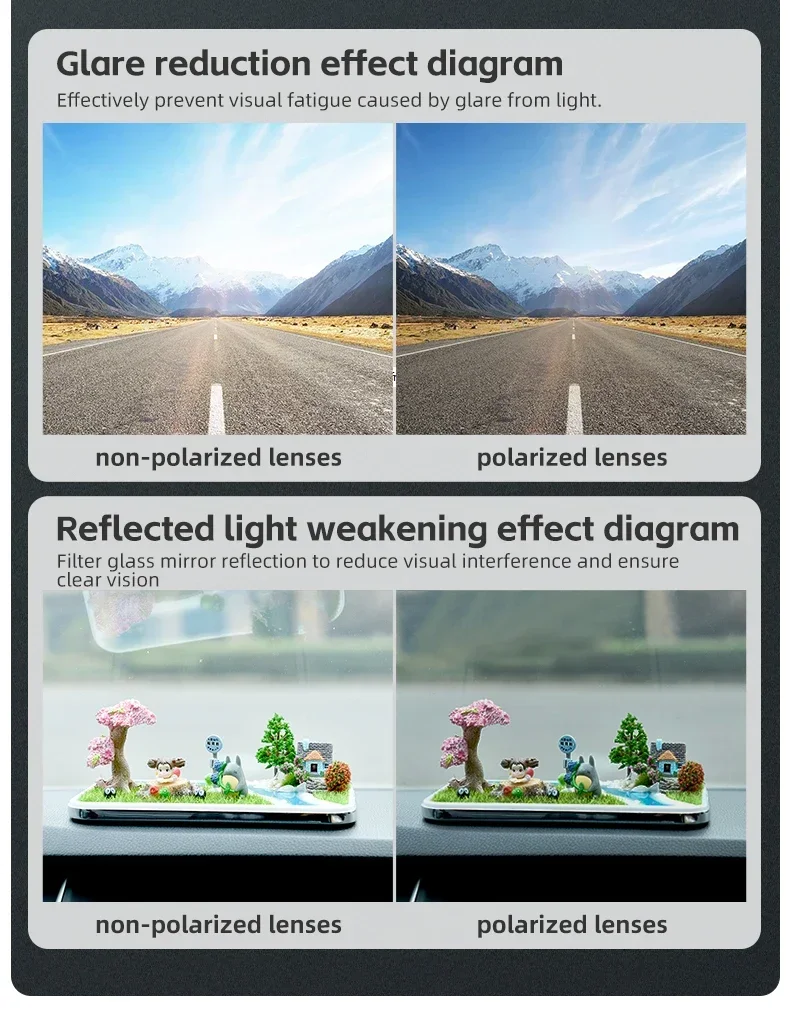Efetivamente bloquear a luz refletida, melhorar o contraste, e são adequados para uso à noite.