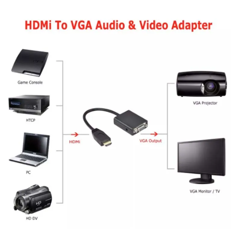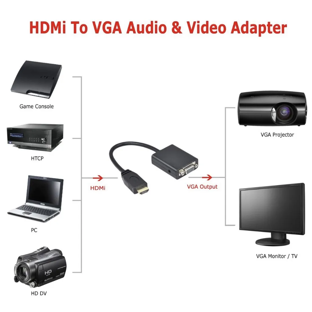 O Conversor Hdmi para VGA + Áudio converte a conexão digital Hdmi em conexões analógicas de vídeo VGA e áudio. É a solução para conectar computadores, Notebooks, Dvd, Blu-ray players, receptores Sky, receptores Net, receptores Tv box, Dual Sat, home theater, consoles de vídeo game ou outros dispositivos eletrônicos com saída HDMI e transmitir vídeo em Tvs, monitores ou projetores VGA.