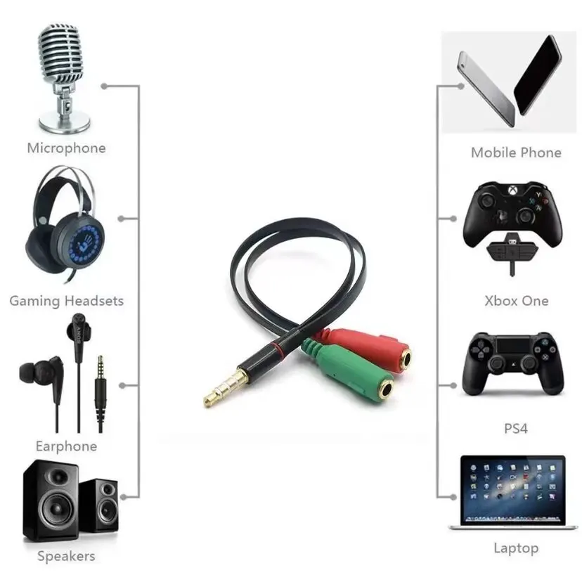 Cabo Adaptador Resistente P2-P3 P/ Headset Fones C/ Microfone/ Compatível C/ Áudio de PS4 e Xbox – Envio Rápido P/ Todo o Brasil
