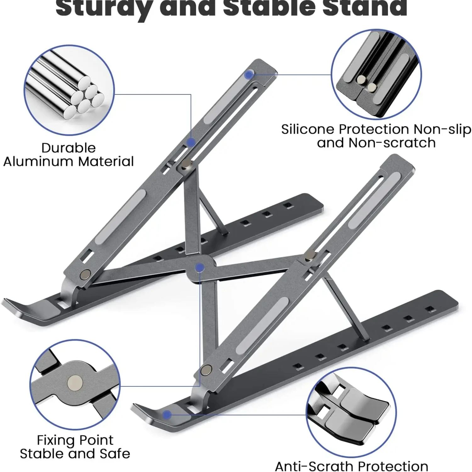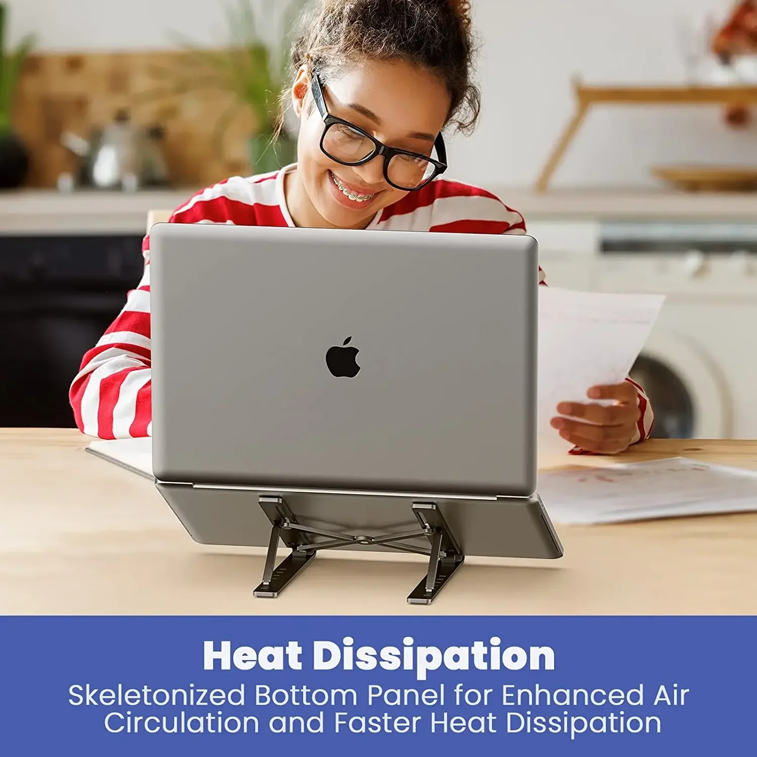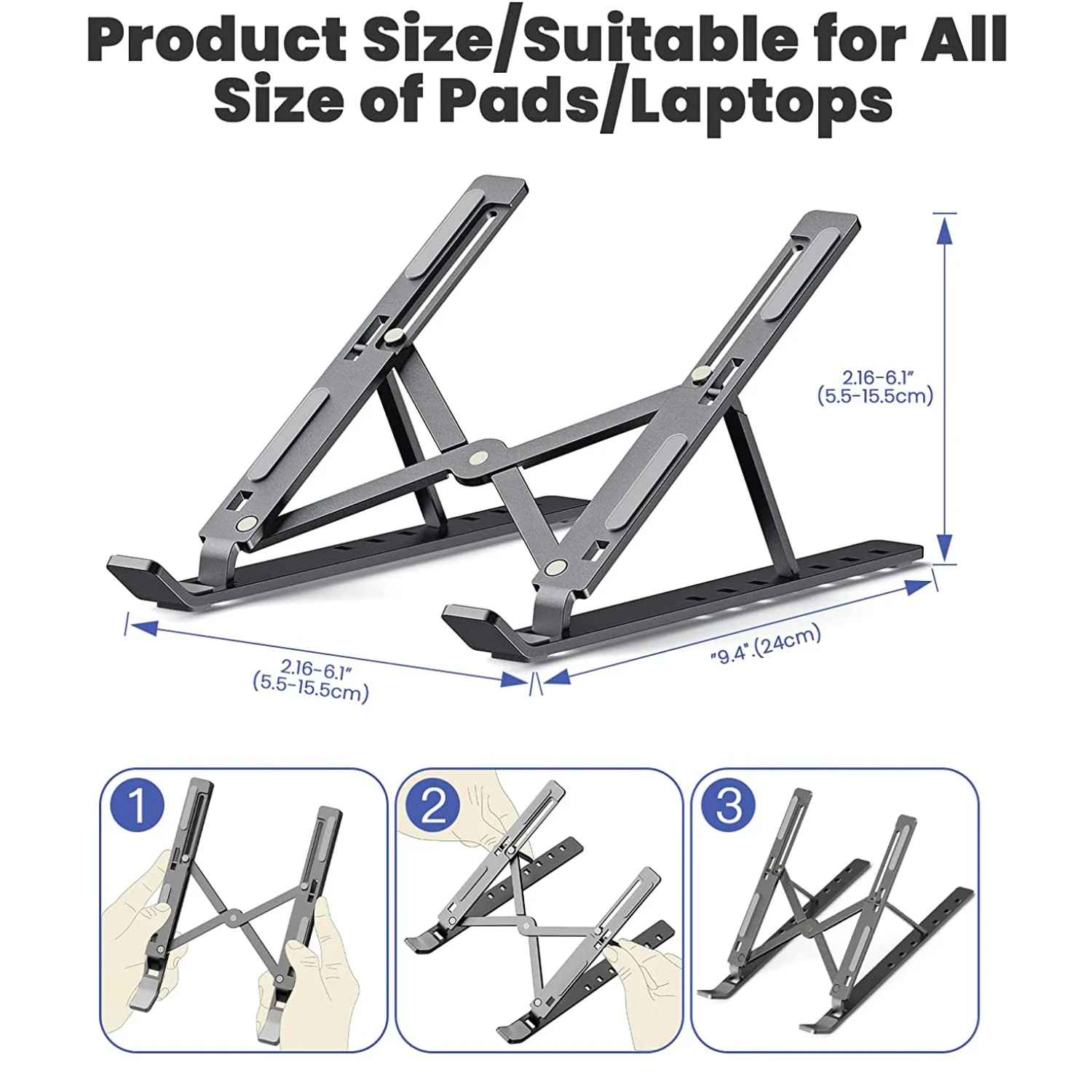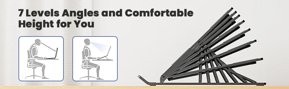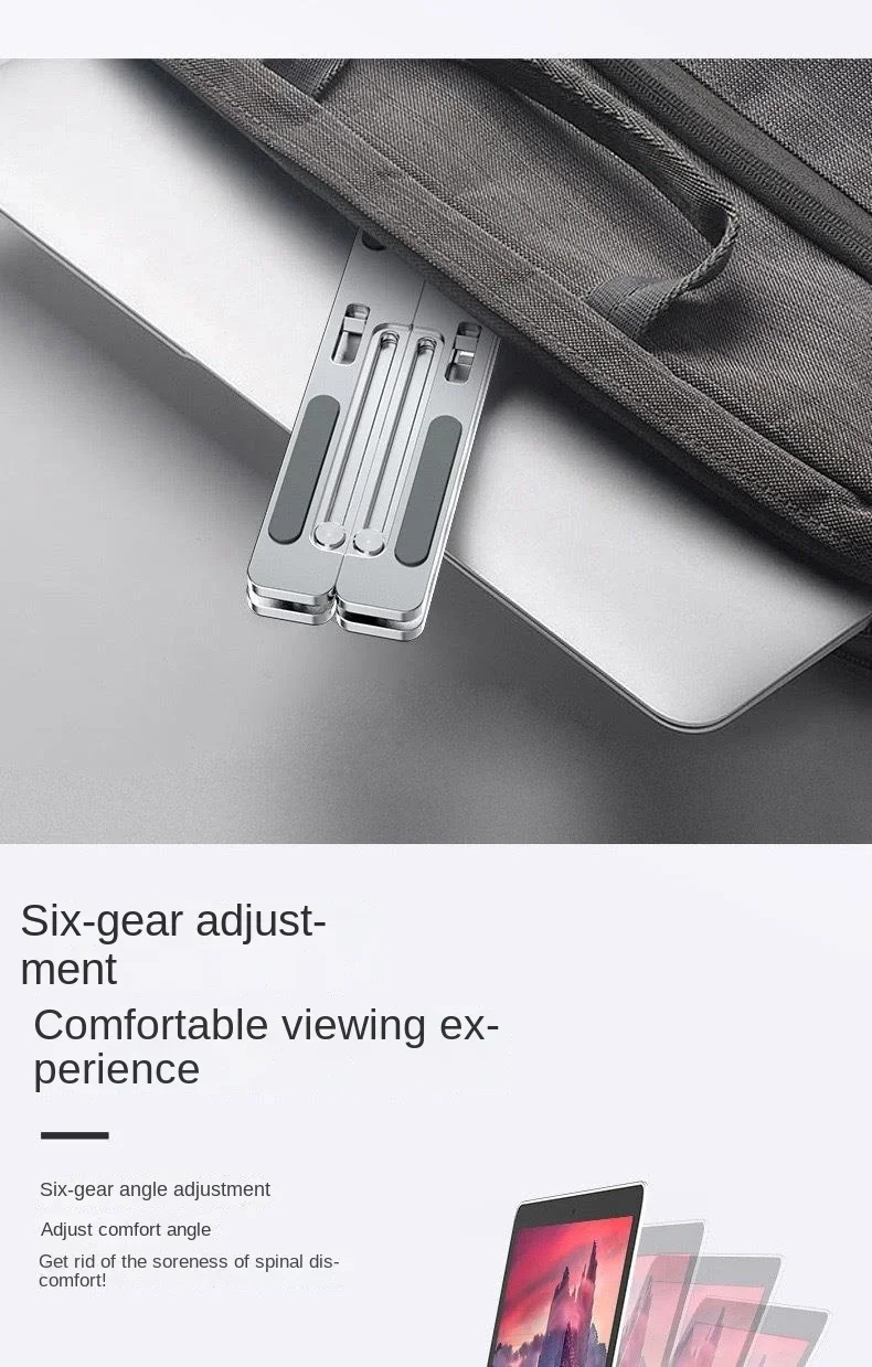 【Compatível com 】-itens de 9 a 15,6 polegadas, como Book, Macbook, Mackbook Air, Macbook Pro, iPad 10th/9th/8th/7th Geração, iPad Air 5/4/3/2, iPad Pro 2/3/4, iPad Mini, Lenovo, Acer, iPad Pro etc. 【Resistente e Portável】-O suporte do computador é inteiramente feito de liga de alumínio espessa, Então o suporte é resistente. A borracha nas mãos do titular adere firmemente e garantir o seu laptop estável no suporte. E os pés de borracha impedem que o suporte escorregue em seu desktop. 【Ângulo ajustável】-Este suporte para laptop oferece 7 ajustes de ângulo, sempre haverá um ângulo para o seu conforto, ajuda a reduzir a tensão ocular, dor no ombro, dor nas costas. 【Mantenha o resfriamento】 O design de alumínio aberto fornece boa ventilação e fluxo de ar para evitar que seu laptop superaqueça. Se você precisar armazenar seu laptop, ele se dobra para criar espaço extra em sua mesa e mantê-lo limpo e organizado. 【Dobrável e Leve 】-Pesando apenas 245 gramas (0,54 libras), pode ser rapidamente dobrado em um tamanho pequeno de 10*1,77*0,8 polegadas, o que é fácil de armazenar, e fornece-lhe um pequeno saco para você transportar, o que é muito adequado para pessoas em viagens de negócios.