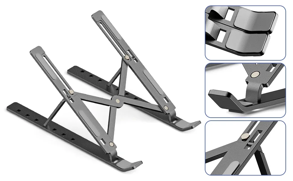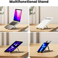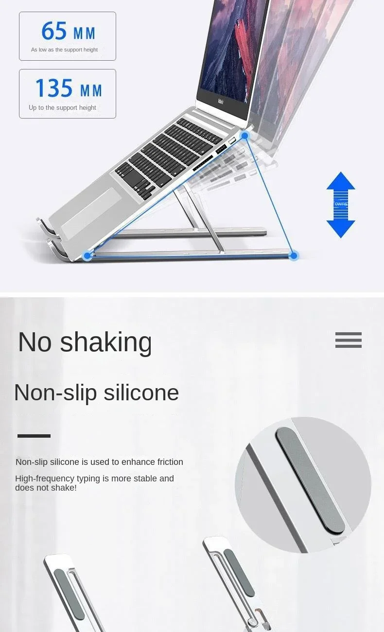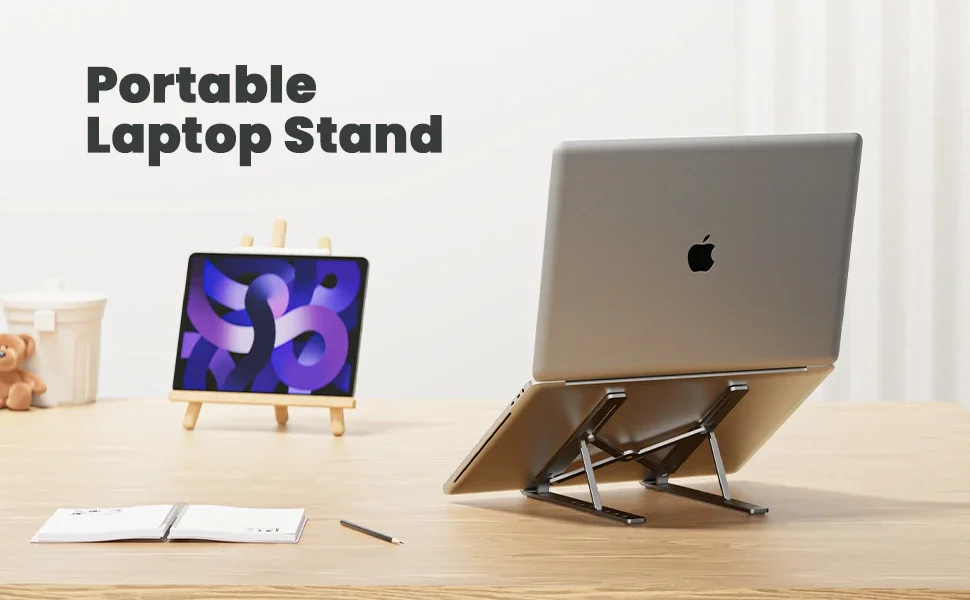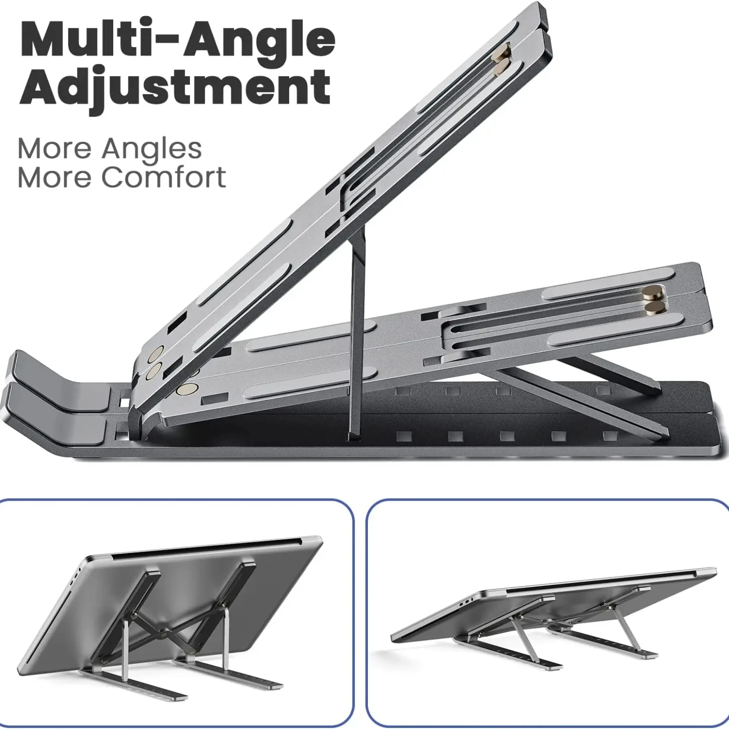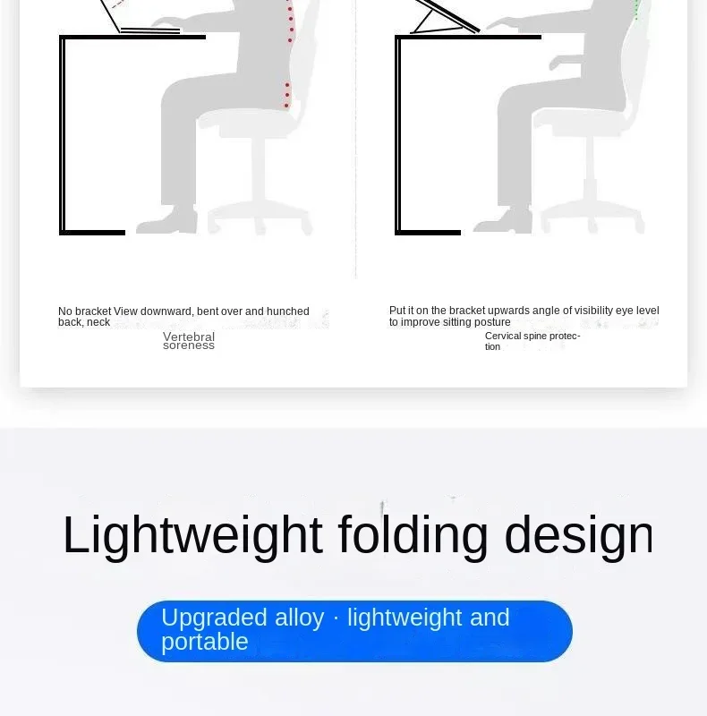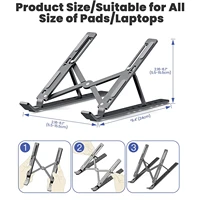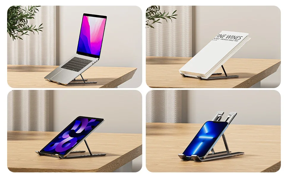 【Compatível com 】-itens de 9 a 15,6 polegadas, como Book, Macbook, Mackbook Air, Macbook Pro, iPad 10th/9th/8th/7th Geração, iPad Air 5/4/3/2, iPad Pro 2/3/4, iPad Mini, Lenovo, Acer, iPad Pro etc. 【Resistente e Portável】-O suporte do computador é inteiramente feito de liga de alumínio espessa, Então o suporte é resistente. A borracha nas mãos do titular adere firmemente e garantir o seu laptop estável no suporte. E os pés de borracha impedem que o suporte escorregue em seu desktop. 【Ângulo ajustável】-Este suporte para laptop oferece 7 ajustes de ângulo, sempre haverá um ângulo para o seu conforto, ajuda a reduzir a tensão ocular, dor no ombro, dor nas costas. 【Mantenha o resfriamento】 O design de alumínio aberto fornece boa ventilação e fluxo de ar para evitar que seu laptop superaqueça. Se você precisar armazenar seu laptop, ele se dobra para criar espaço extra em sua mesa e mantê-lo limpo e organizado. 【Dobrável e Leve 】-Pesando apenas 245 gramas (0,54 libras), pode ser rapidamente dobrado em um tamanho pequeno de 10*1,77*0,8 polegadas, o que é fácil de armazenar, e fornece-lhe um pequeno saco para você transportar, o que é muito adequado para pessoas em viagens de negócios.