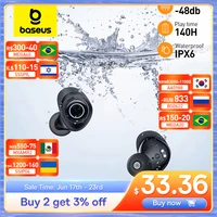 Fones de ouvido sem fio Baseus-Ture, auscultadores Bluetooth 5.3, reprodução 140h, impermeável IPX6, fone TWS, cancelamento de ruído 48dB