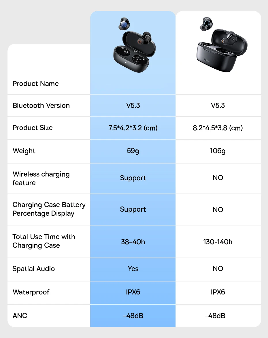 Dê-lhe aproximadamente 8 horas da vida da bateria em uma única carga e aproximadamente 140 horas do tempo da reprodução com um estojo de carregamento.
