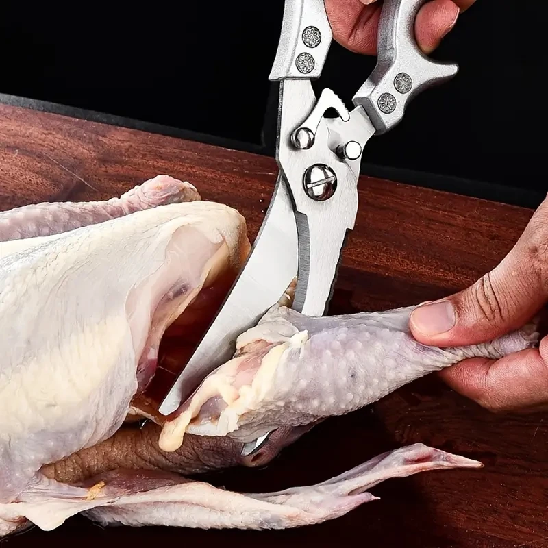 2. Esta tesoura pode ser usada para cortar qualquer coisa. Pode cortar aves e ossos do peixe.