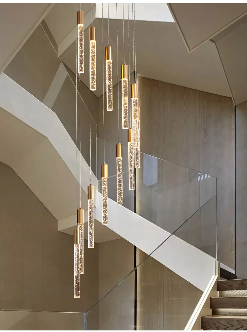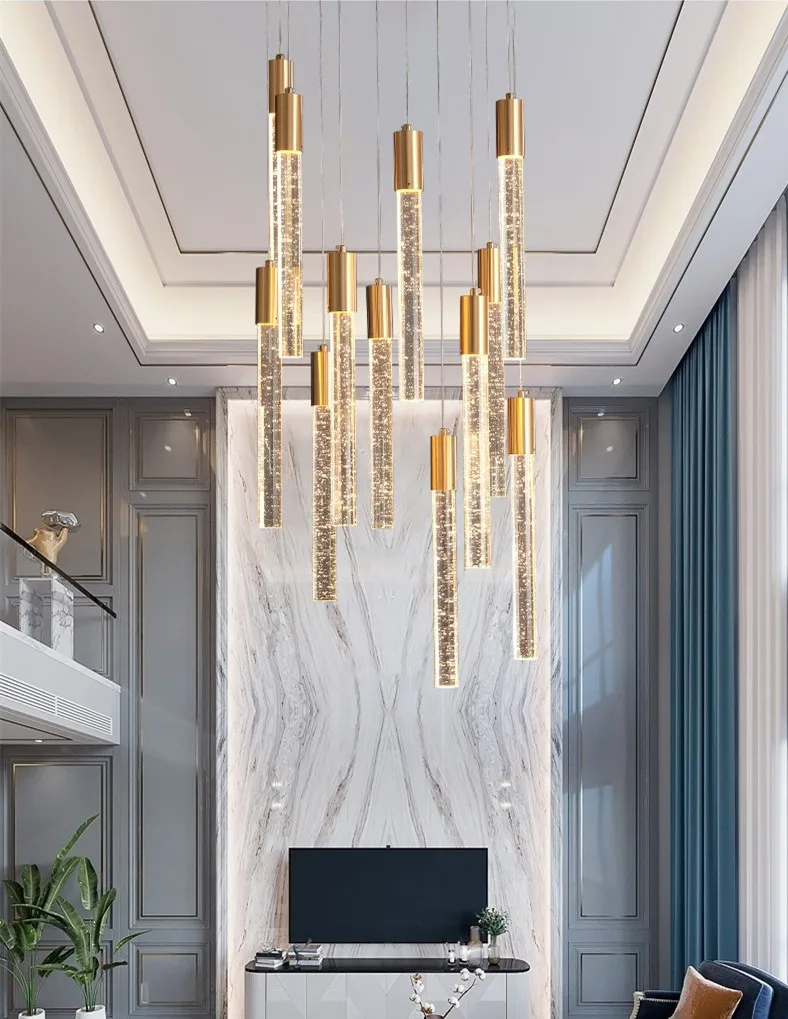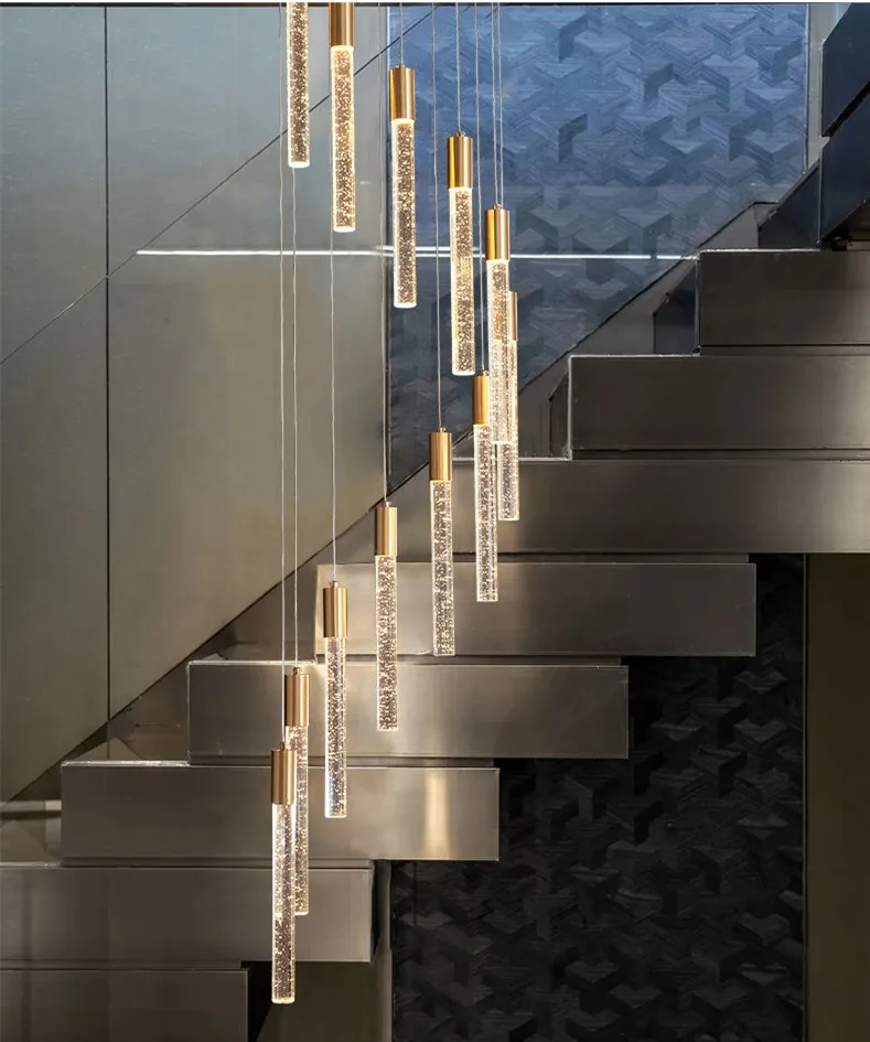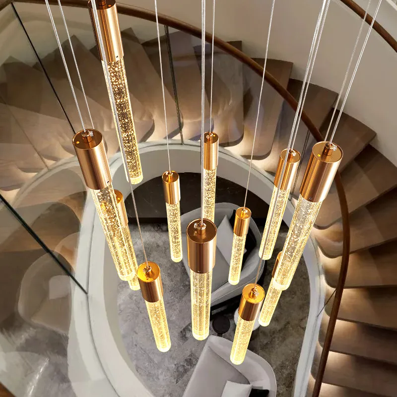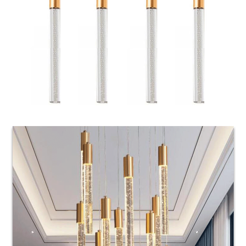 Hollow Crystal Column Chandelier, Lâmpada Longa, Escadaria, Hotel e Apartamento, Moderno e Simples, Restaurante, Vendas e Projeto Duplex