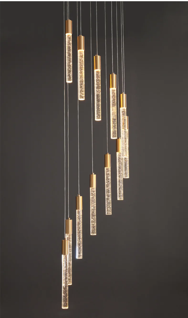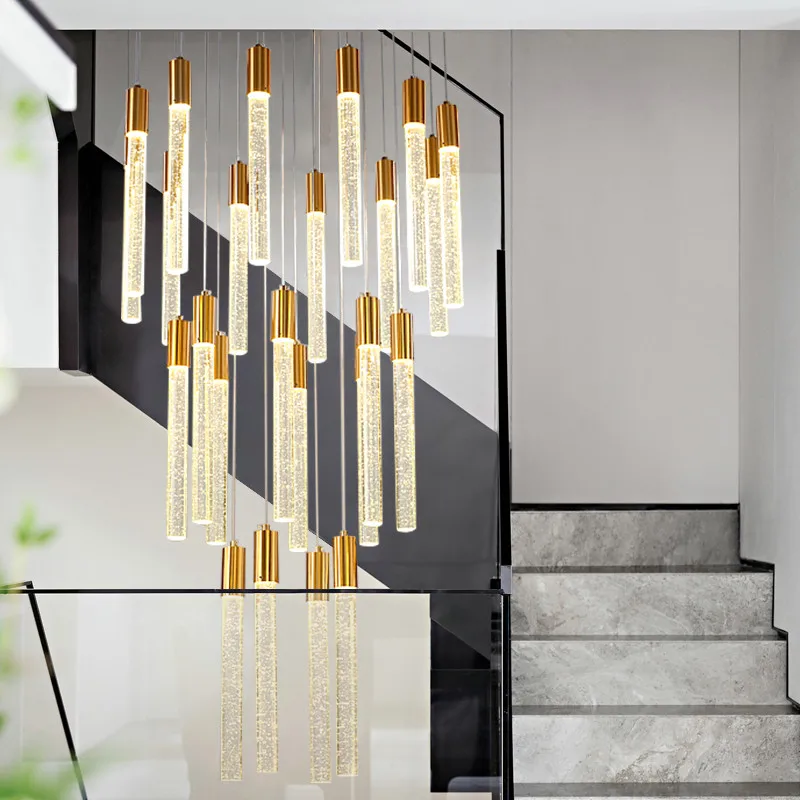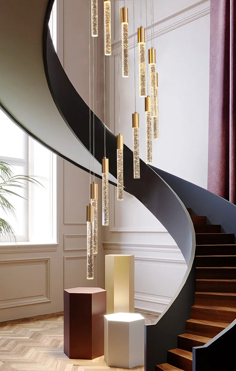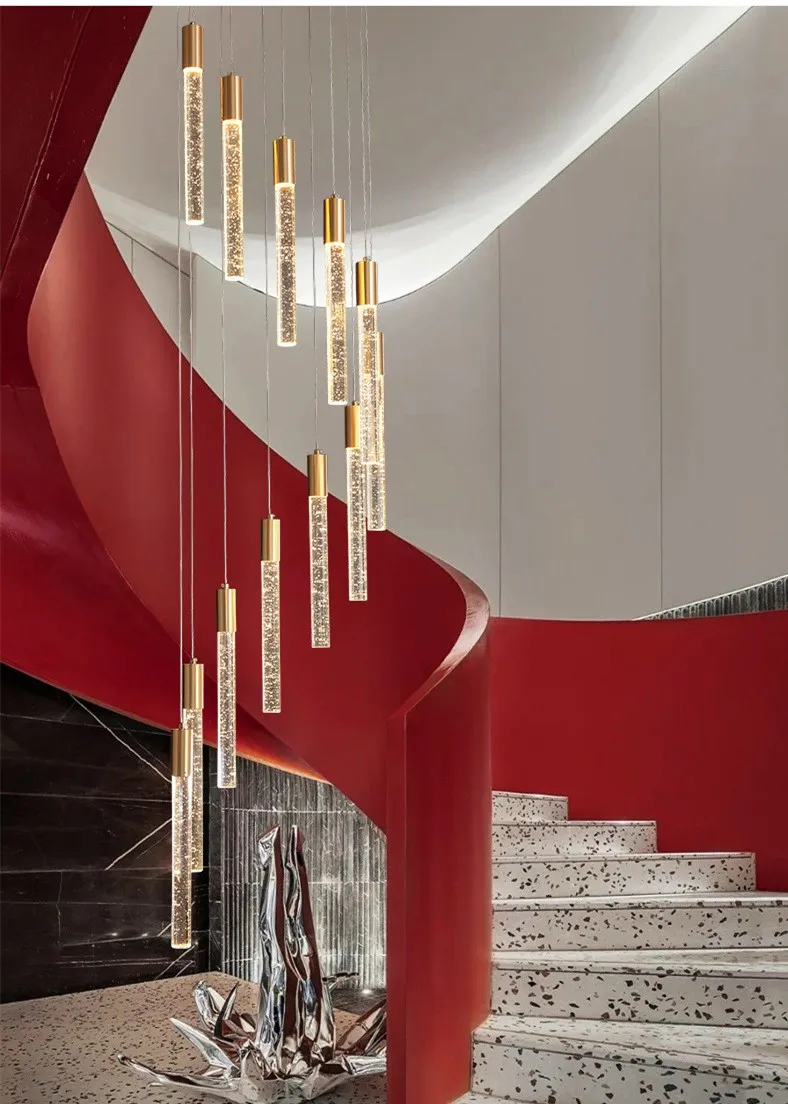 Hollow Crystal Column Chandelier, Lâmpada Longa, Escadaria, Hotel e Apartamento, Moderno e Simples, Restaurante, Vendas e Projeto Duplex