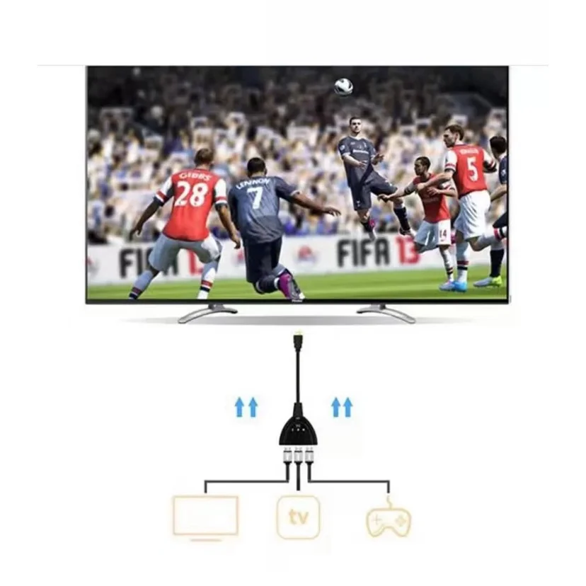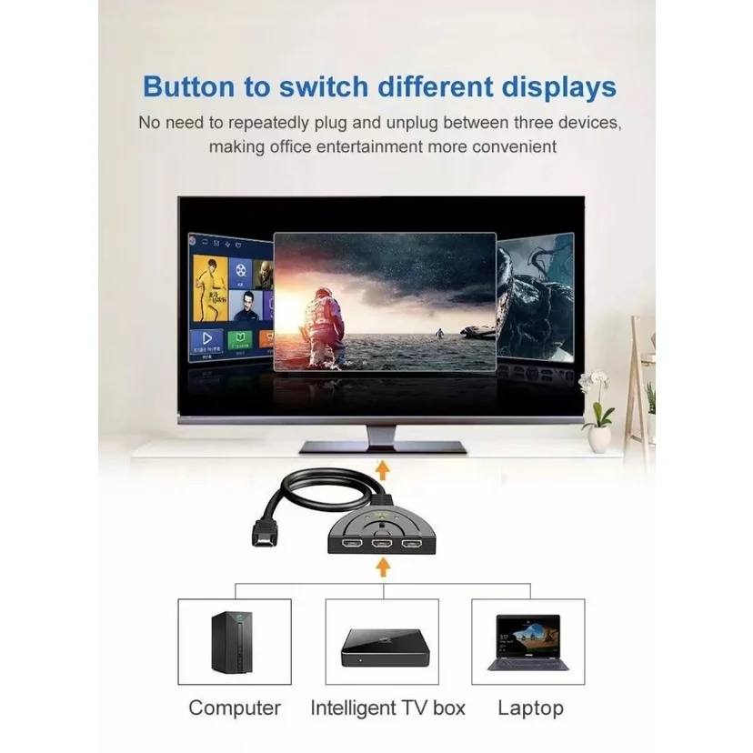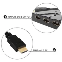 Divisor HDMI full HD, pequeno, mais com extrema qualidade e rendimento, possui 3 entradas HDMI fêmea, e 1 saída HDMI macho, instalação fácil e rápida, conecte aparelho blu ray,receptores de imagens digitais, videogames como: Tvs ONE,dvd’s.. com o hub HDMI 3 x 1 agora você conectar mais aparelhos, sem se preocupar com a poucas saídas da TV..e também, conectar e desconectar os aparelhos mais facilmente.