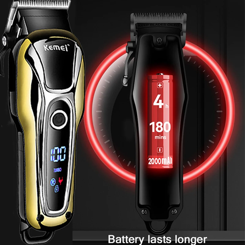 Kemei Hair Clipper elétrico Hair Trimmer profissional Cortador de cabelo dos homens sem fio Cortador de cabelo sem fio display LED