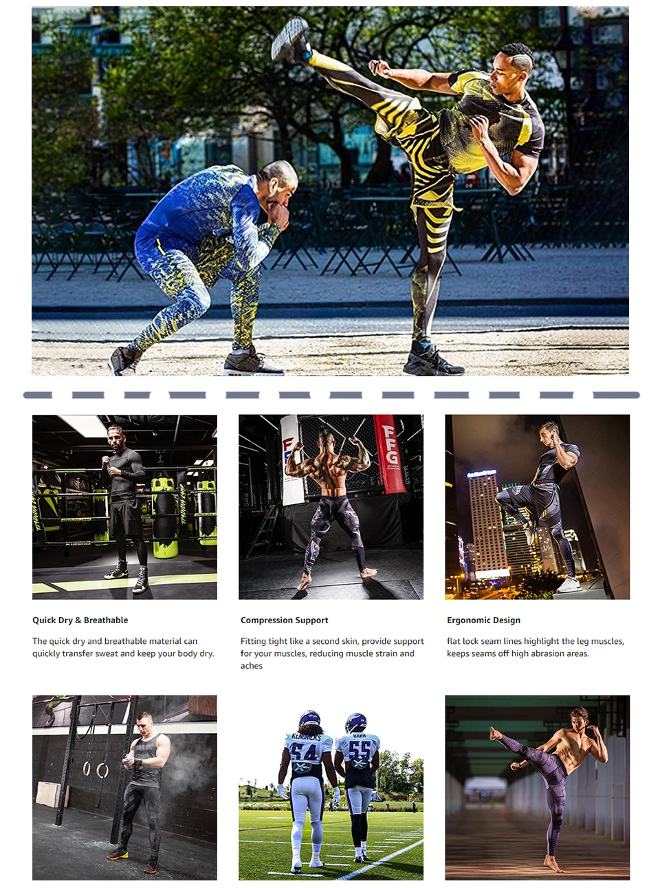 Respirável, camisa de compressão e calças podem absorver a umidade do corpo em rápida e acelerar a evaporação do suor, mantê-lo seco e confortável durante o treino e a prática