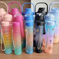 Kit 3 Garrafas de Água Motivacionais Fitness Tie Dye Degrade Preto Branco Sortida Beber Academia 2 Litros 900ml 300ml