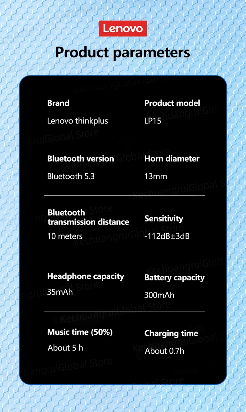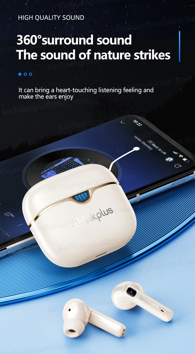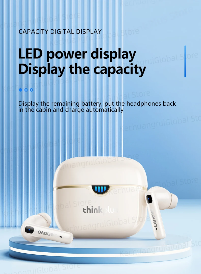 Lenovo-LP15 Fones de ouvido sem fio, fones de ouvido para jogos, TWS, Bluetooth 5.3, Hifi Headset, Capacidade LED, 300mAh, original, novo