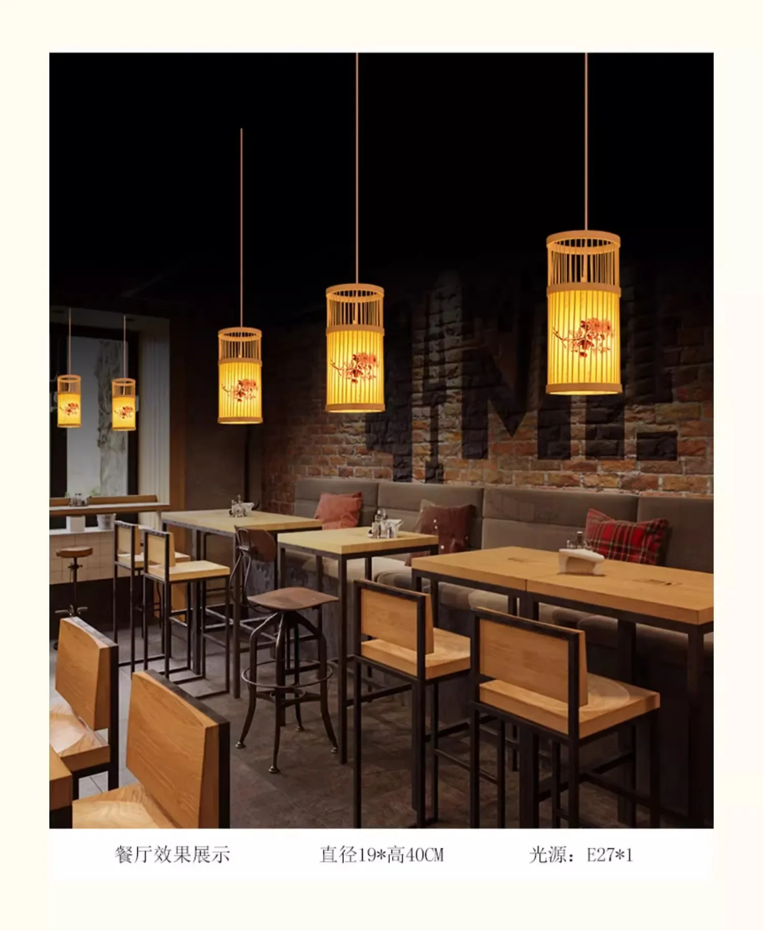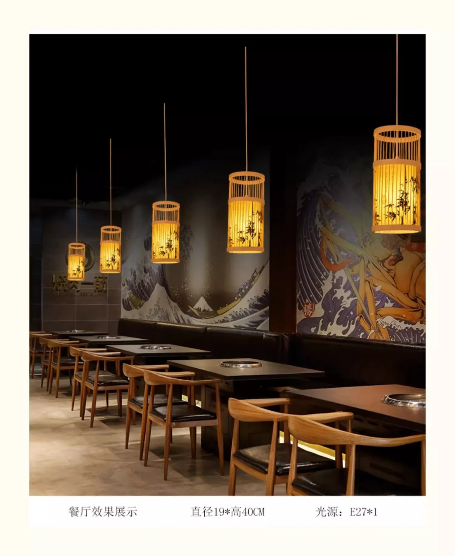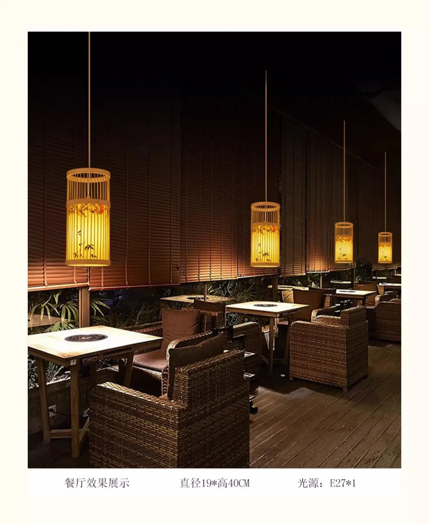Lustre de bambu estilo chinês, lâmpada para sala de chá, hotel, sala de estar, lanterna, panela quente, restaurante, restaurante, novo