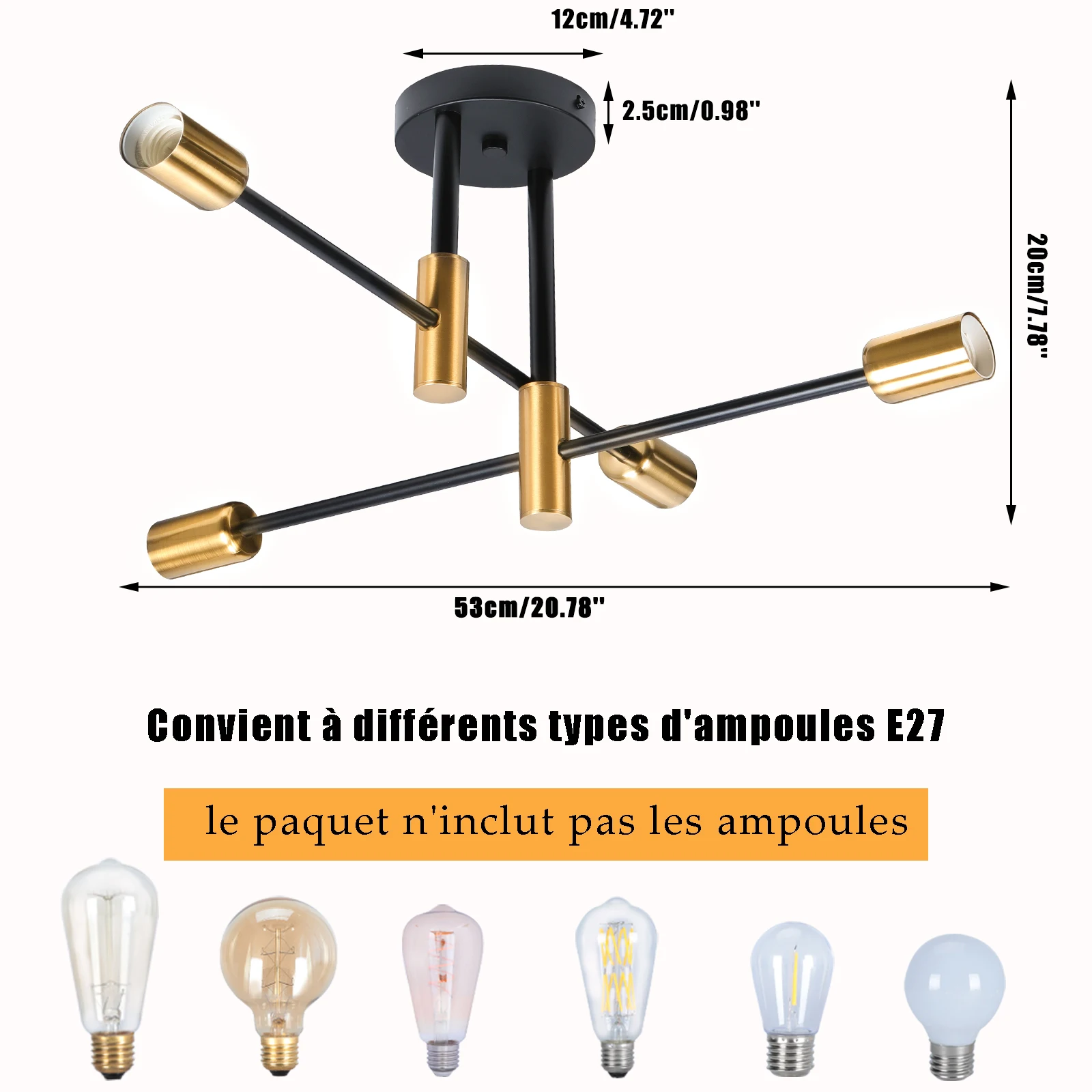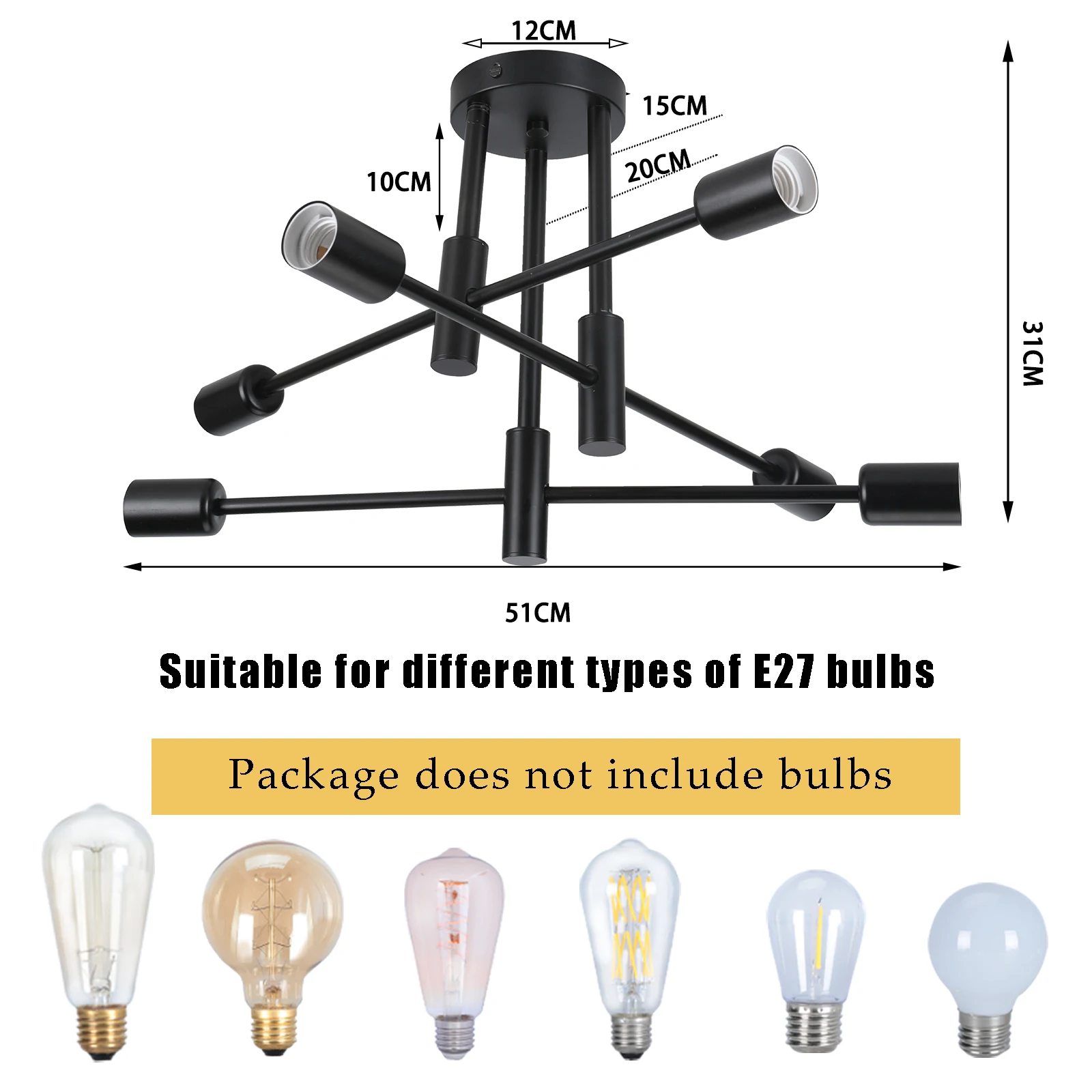 -Tipo base: E27 * 2/4/6 (Lâmpadas não incluídas)