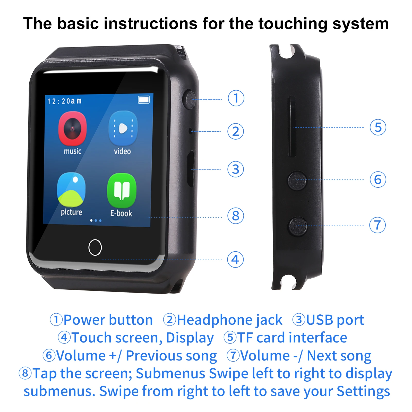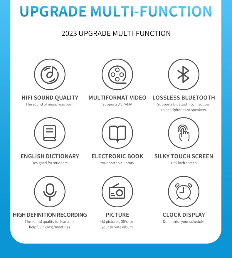 - Função: Tela táctil,Leitura de E-Book,bluetooth,Pedometro,Relógio mundial