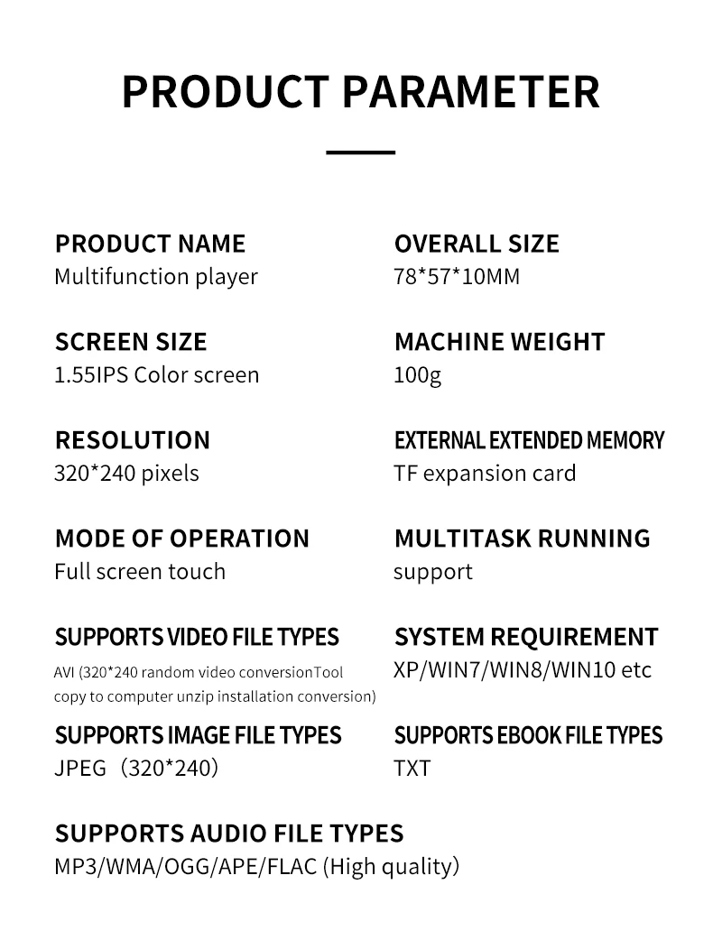 - Music: MP3,WMA,APE,FLAC,AAC