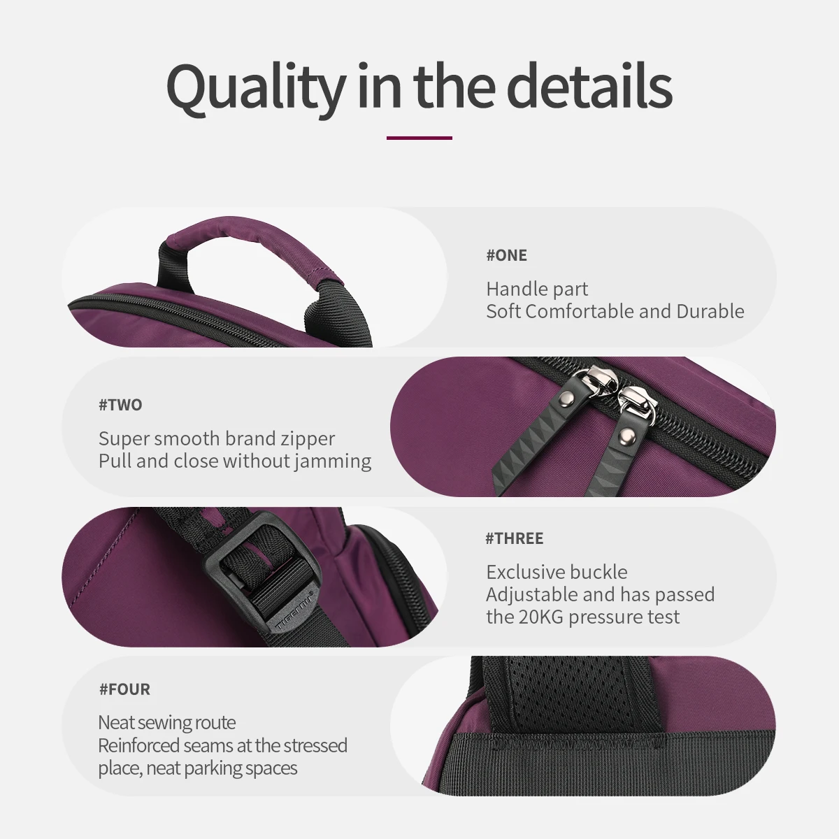 - Note: Tigernu promise a lifetime guaranteed after-sales service for non-artificial quality problems caused by zippers.