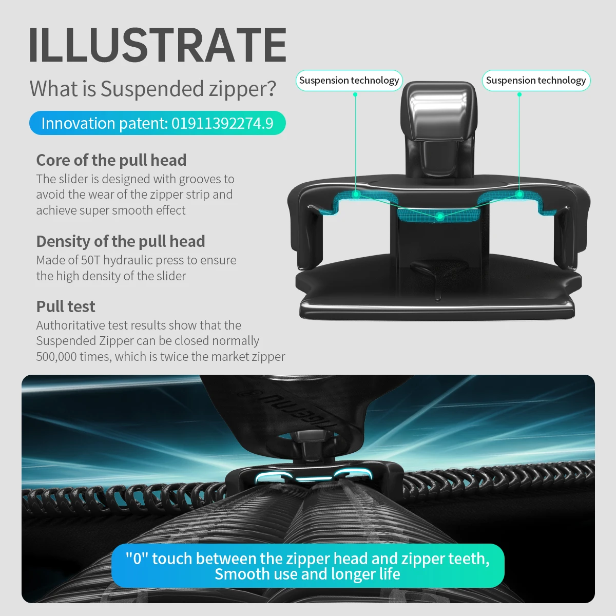 - Zipper: Brand Suspended Innovative Zipper