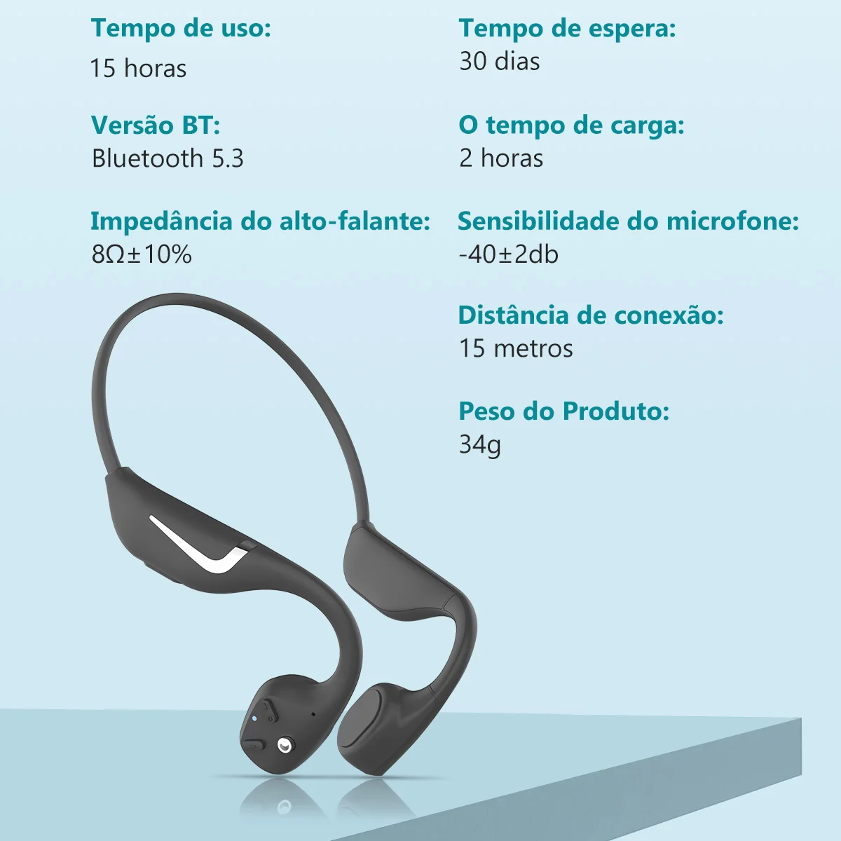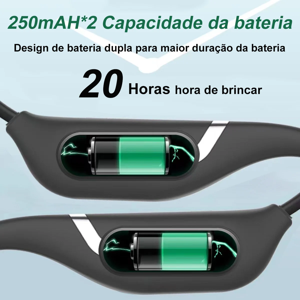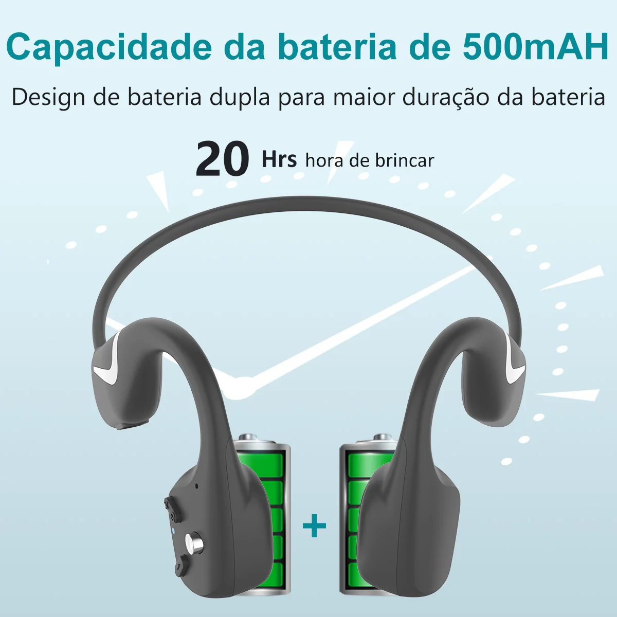 【TRABALHO LONGO 】-Fones de ouvido de condução óssea embutidos 500mAh bateria de lítio. Ele pode trabalhar por 20 horas após totalmente carregada.