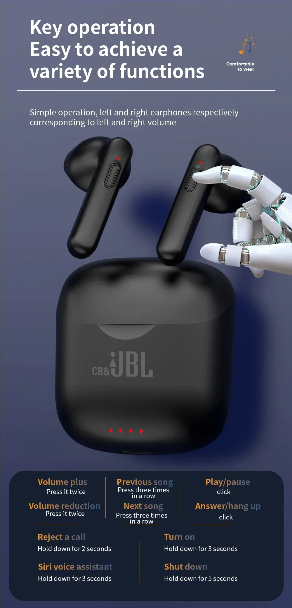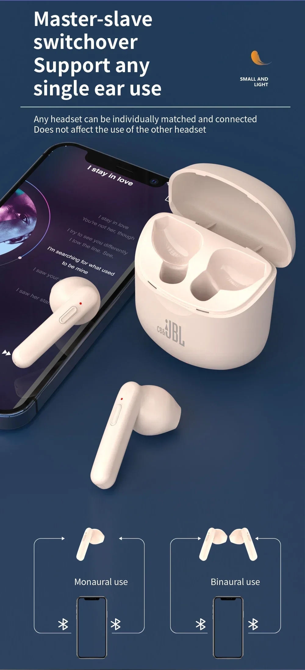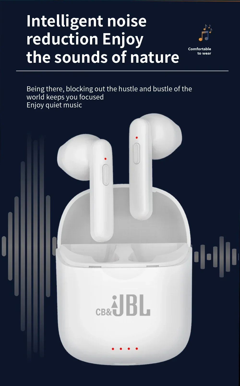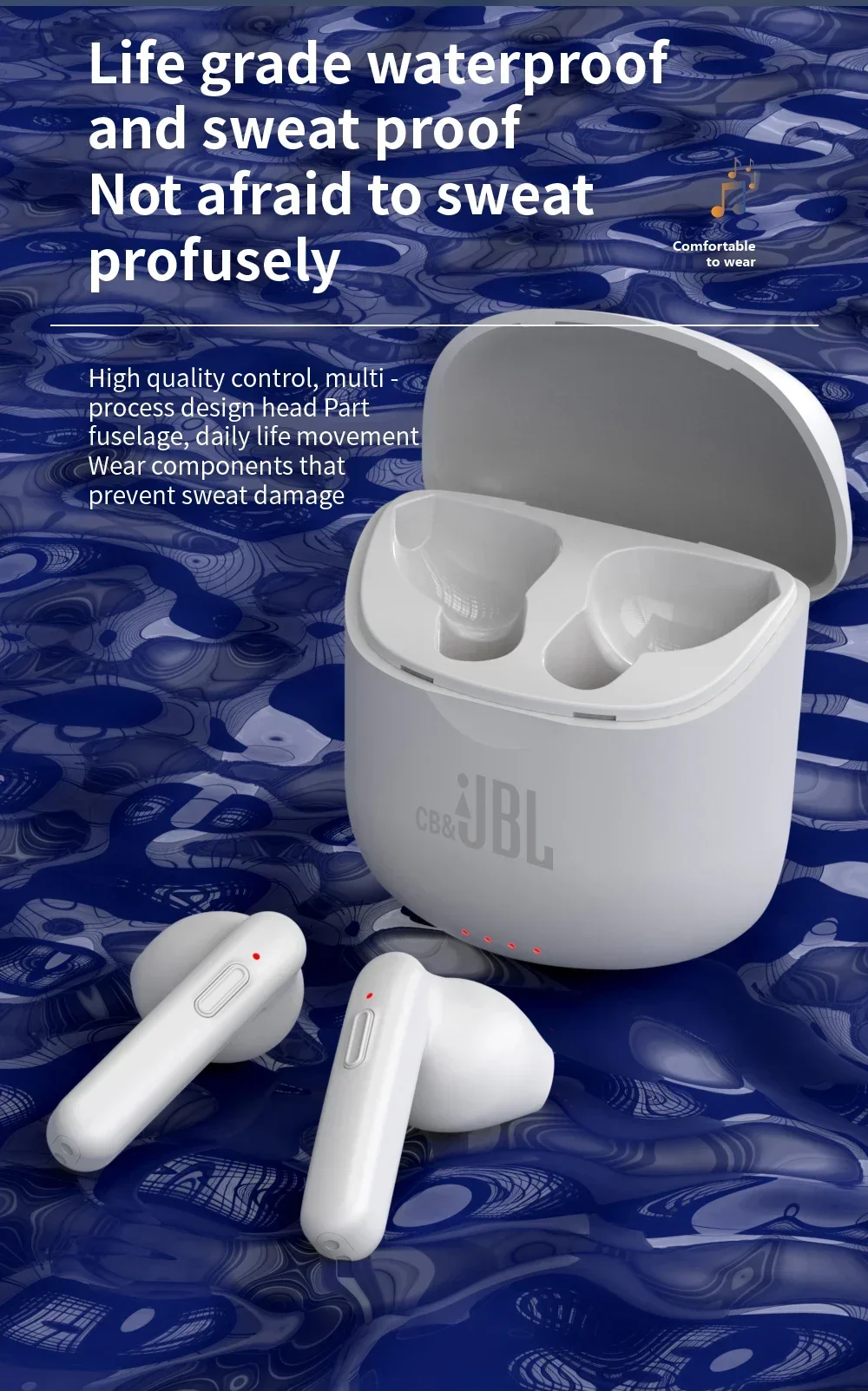 TWS Wireless Bluetooth Fones de ouvido com microfone, fones de ouvido esportivos, som hiFi, fones de ouvido, Cb e JBL Tune J220, original