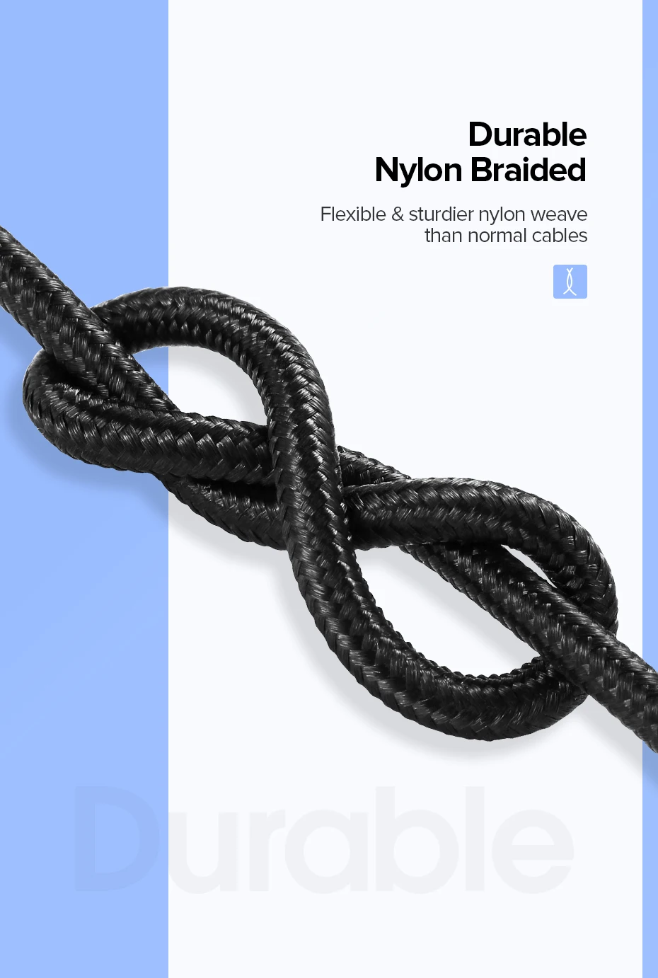 Cabo trançado de nylon durável não só ficar emaranhamento livre, mas também flexível o suficiente para ser embrulhado e colocado em um saco.