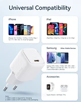 45% menor que um carregador original de 20W-mas igualmente potente. Adequado para viagens home office