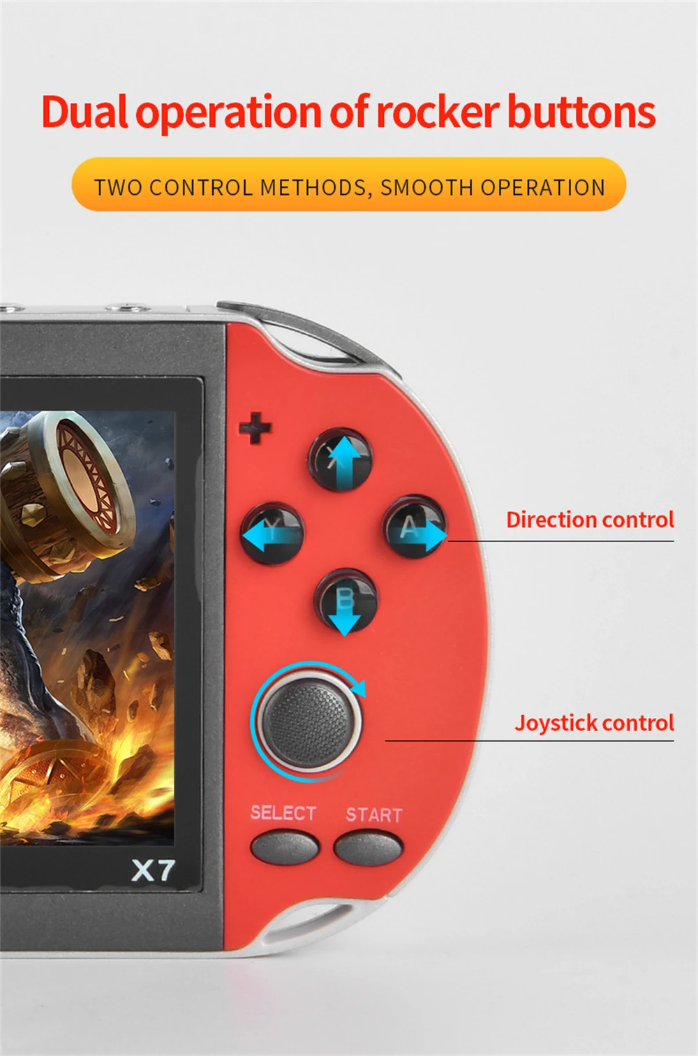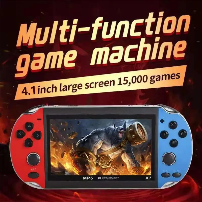 O console de jogos portátil X7 possui uma tela de alta definição de 4,1 polegadas, suporta jogos de 8/16/32/64/128 bits e mais de 10.000 jogos.