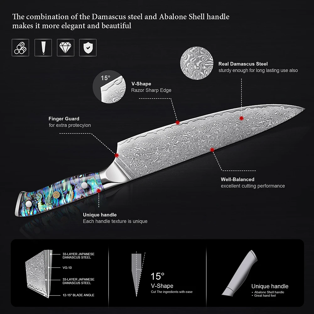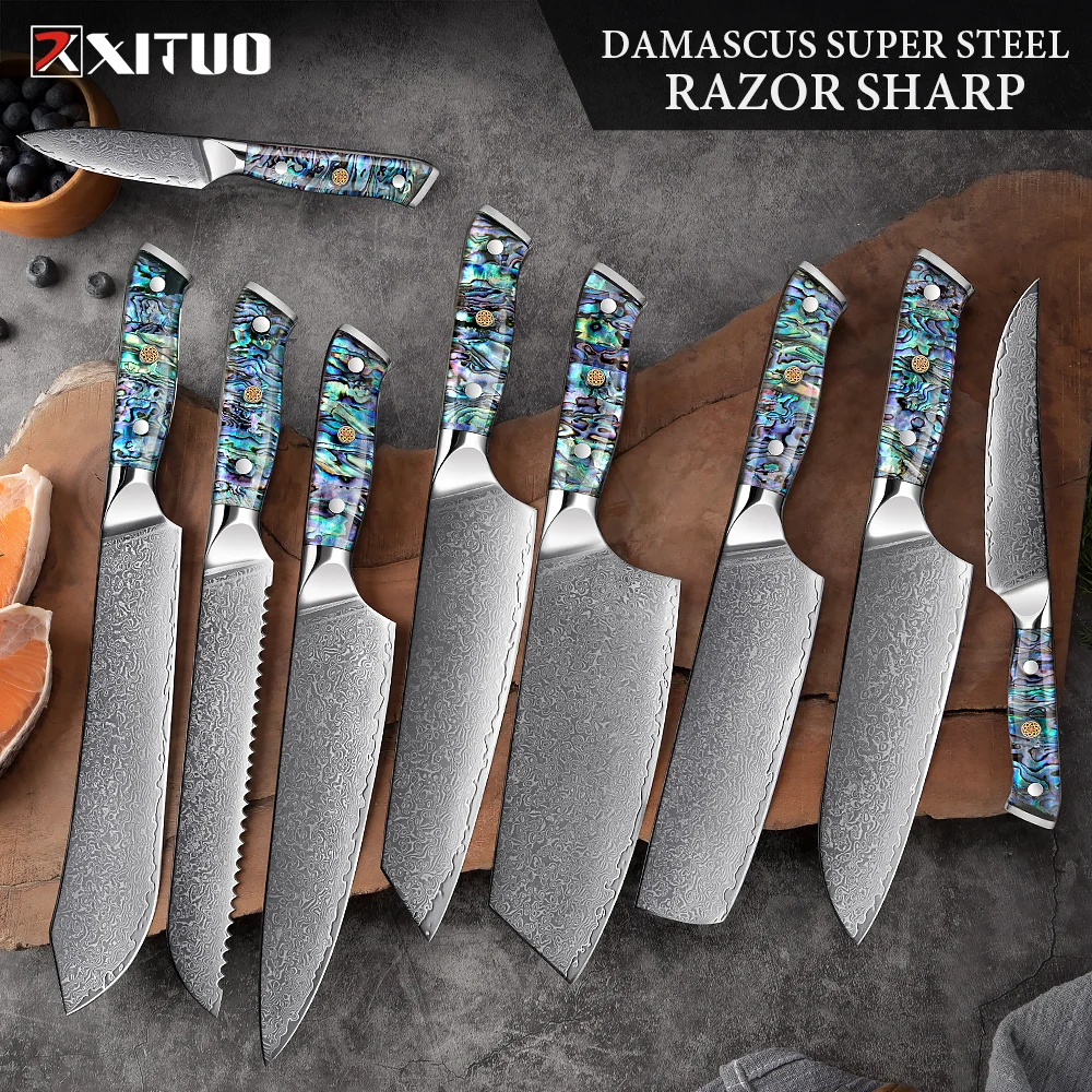 XITUO Damascus Aço Facas De Cozinha Abalone Shell Handle