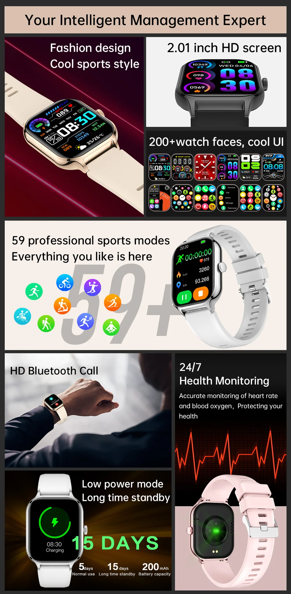 YTOM SmartWatch 2.01 polegada hryfine Relógio Inteligente Para Homens Mulheres Presente Full Touch Screen Esportes Fitness Relógios Chamadas Bluetooth Z49